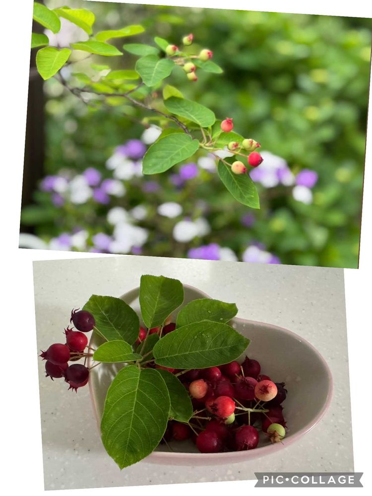 ジューンベリーを今日摘み終わり、少しずつ収穫して冷凍しておいた🍓と昨年のブラックベリーで作りました❣️