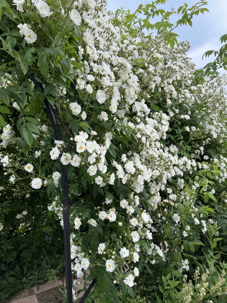 ガーデンのアーチは純白小輪八重のランブリングレクターがこれでもかと咲いていて素晴らしかった🥰