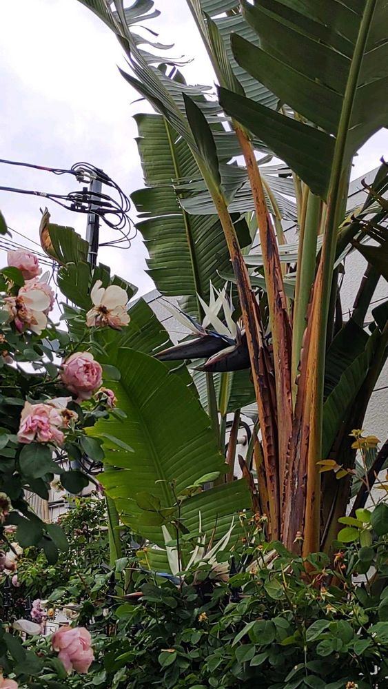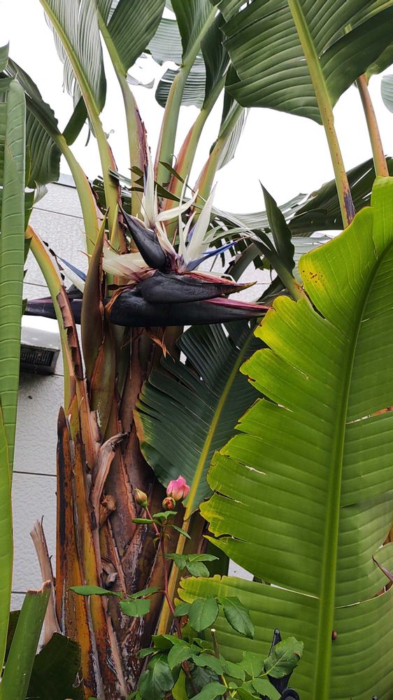 「旅人の木」と記載していましたが、「瑠璃極楽鳥花」のようです。