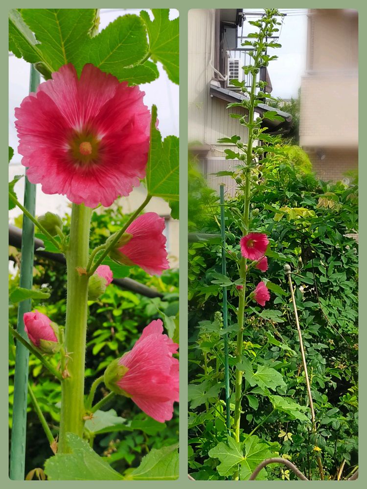 驚きつつ帰宅したら我が家のタチアオイも咲いていて😄