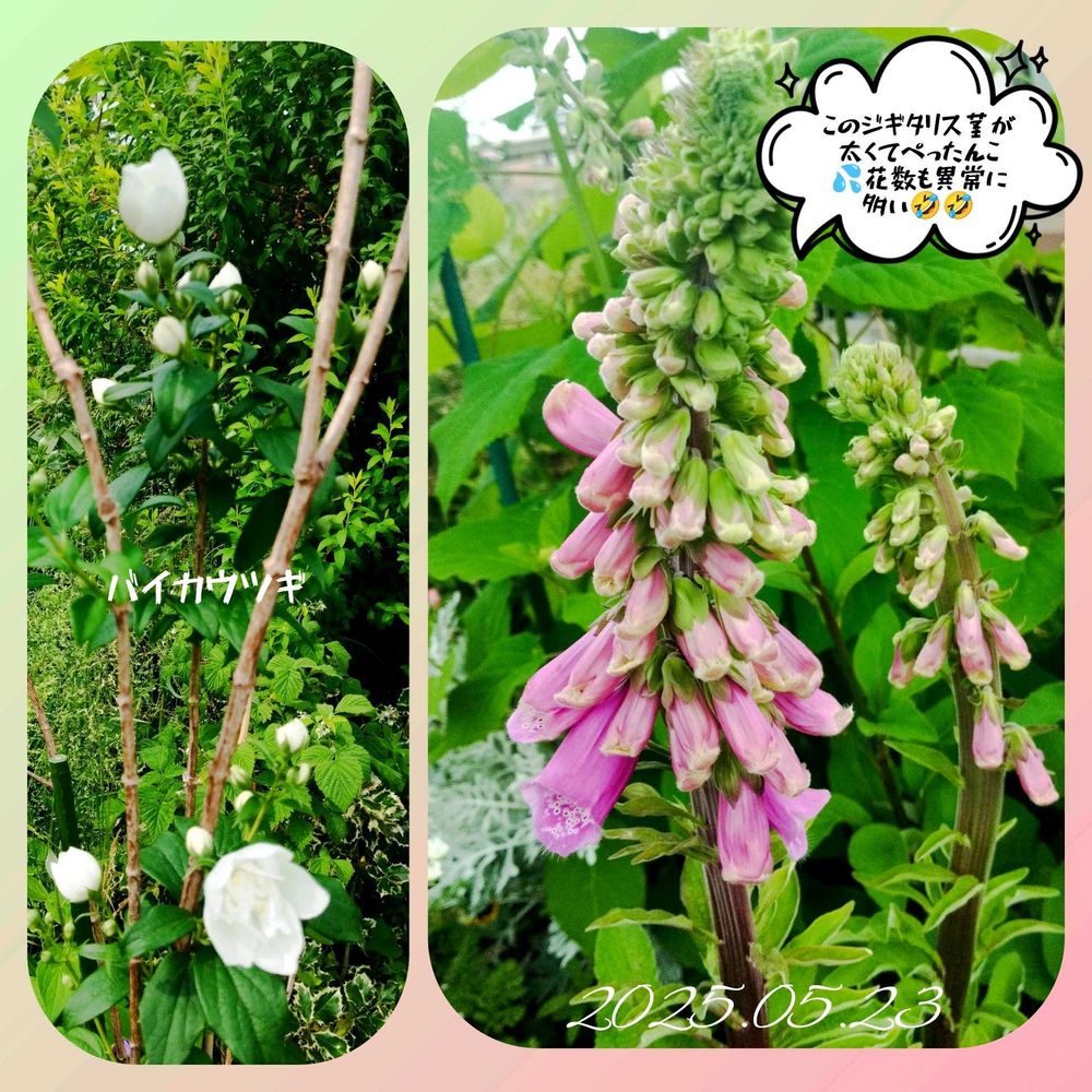 茎がめちゃ太くて花沢山のジギタリスが咲いてます。