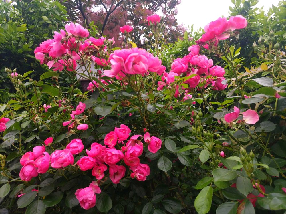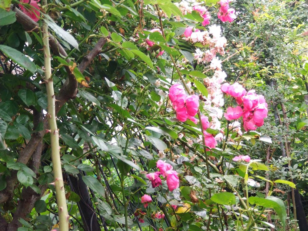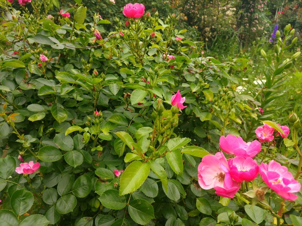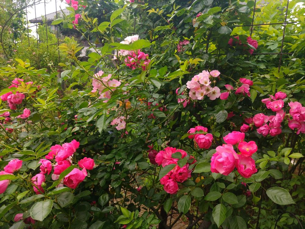今日はアンジェラだけ集めてみました。薔薇をやり始めた頃はアンジェラの挿し芽を増やし6株ほどあります。最後が親株でヒマラヤンムスクとフェンス仕立てしています。