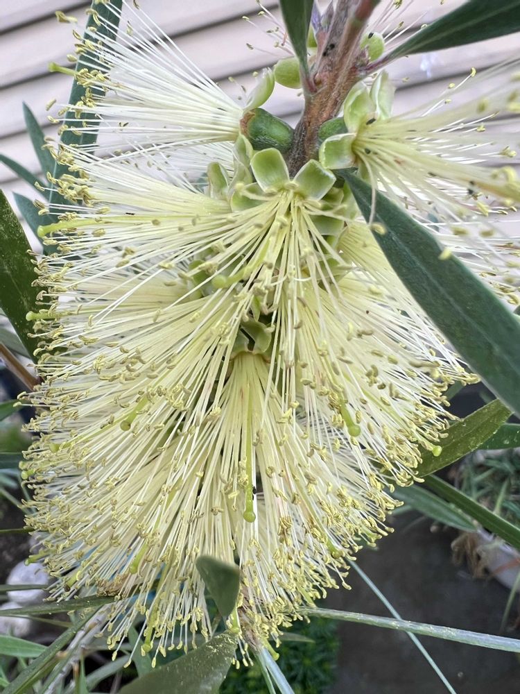 ブラシの木ピンクなのですが今年は陽気のためか白になっていました💦
