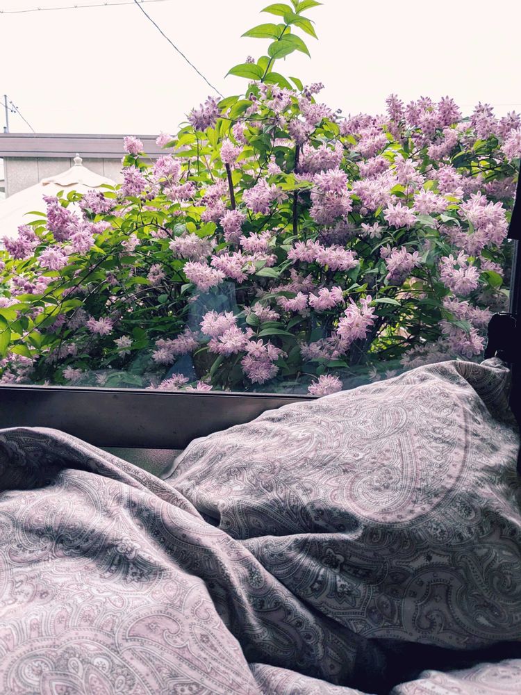 ベッドからゆっくりとお花鑑賞 もう少しこんな贅沢な日が続きそう🎶😄