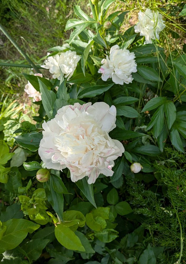 4枚目の白い八重の芍薬はいつの間にか赤い筋が入るようなりました🤍♥️🤍
