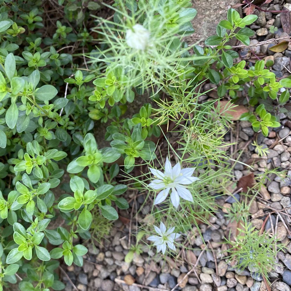 こぼれ種のニゲラさん小さく可愛く咲いてます·͜·ᰔᩚ