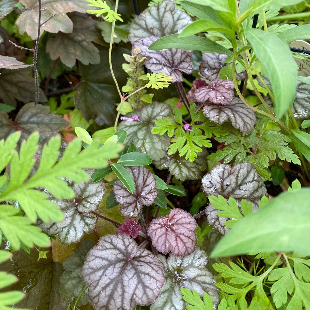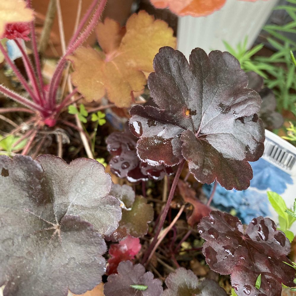 寄せ植えの後ろ側にいたヒューケラさん なかなか渋くて素敵·͜·ᰔᩚ