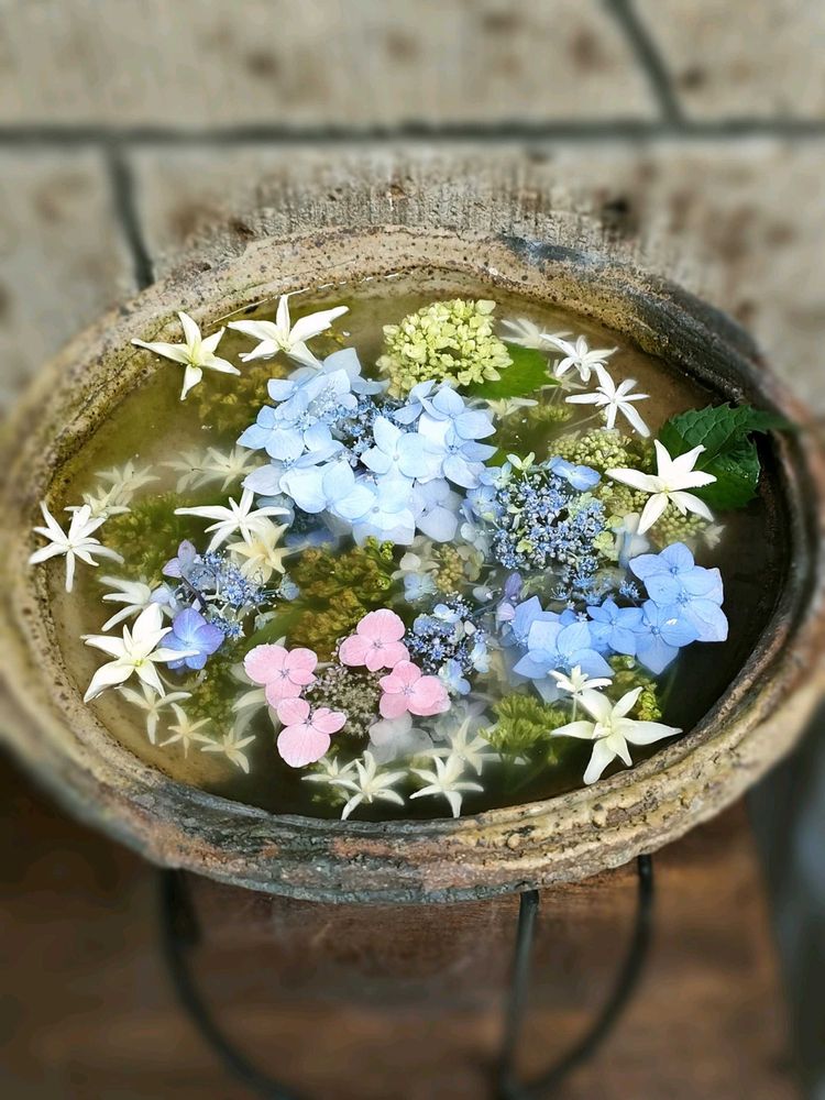 ドヤ顔⁉️の花手水とは一線を画す、和の佇まいの素敵な花手水でした🪩(*˘︶˘*).。.:*♡