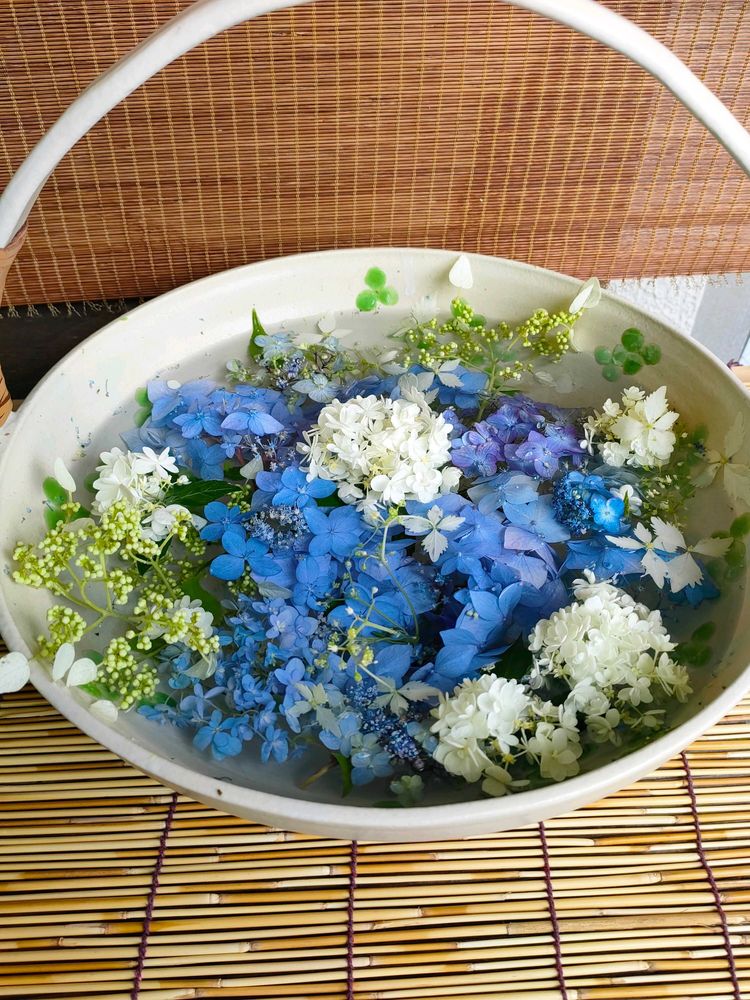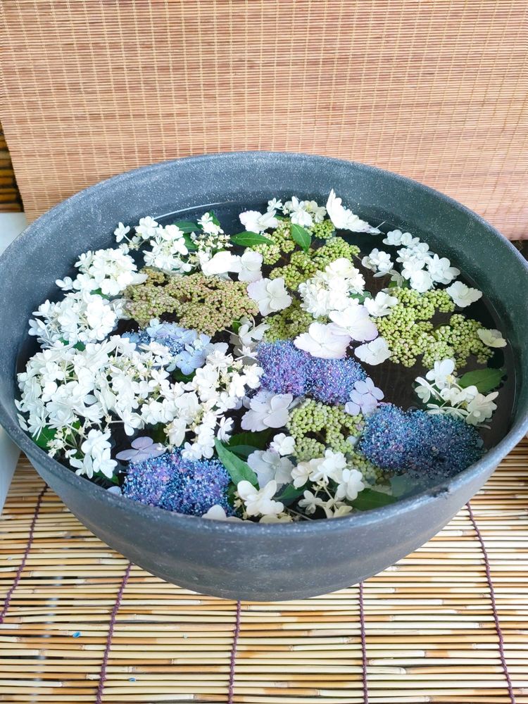 1️⃣2️⃣3️⃣目にも涼し気なヤマアジサイの花手水、鎌倉アジサイ同好会さん主催の