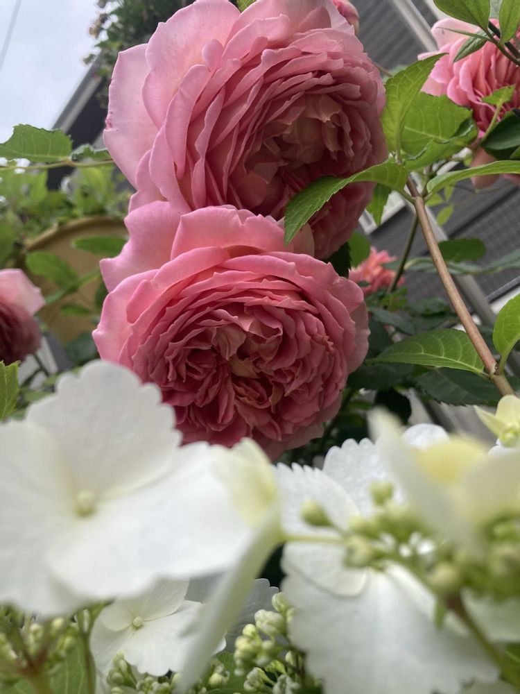 何とも愛らしい♡今年は細い枝も残したせいで下向きっ子が多いけども、やっぱり肥料をIBにしたからか花付きとシュートの発生が良い( *˙ω˙*)و グッ!