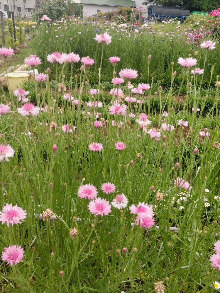 整地してたら、春になり、一人でに咲き出した、去年のこぼれ種から咲いた、矢車草です。弱そうで、たくましく咲く矢車草に力貰えますね💪🙆💓🥰。