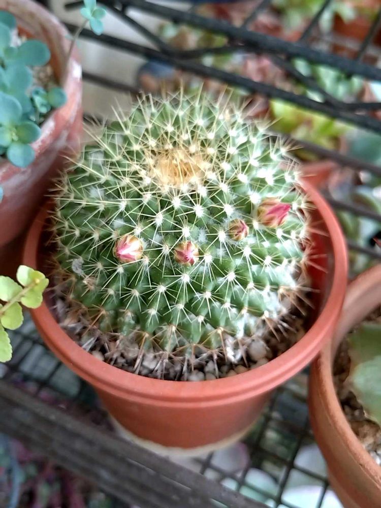 こんにちは🪴なかなか蕾が付かないサボテン🌵たちの中で蕾発見は嬉しいです😍まん丸な形が可愛らしいサボテンさんです😆💞