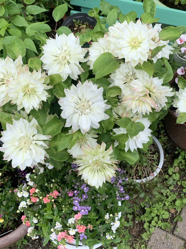 小さな庭,クレマチス雪おこし,サフィニアアート ブルーモーメントの投稿画像