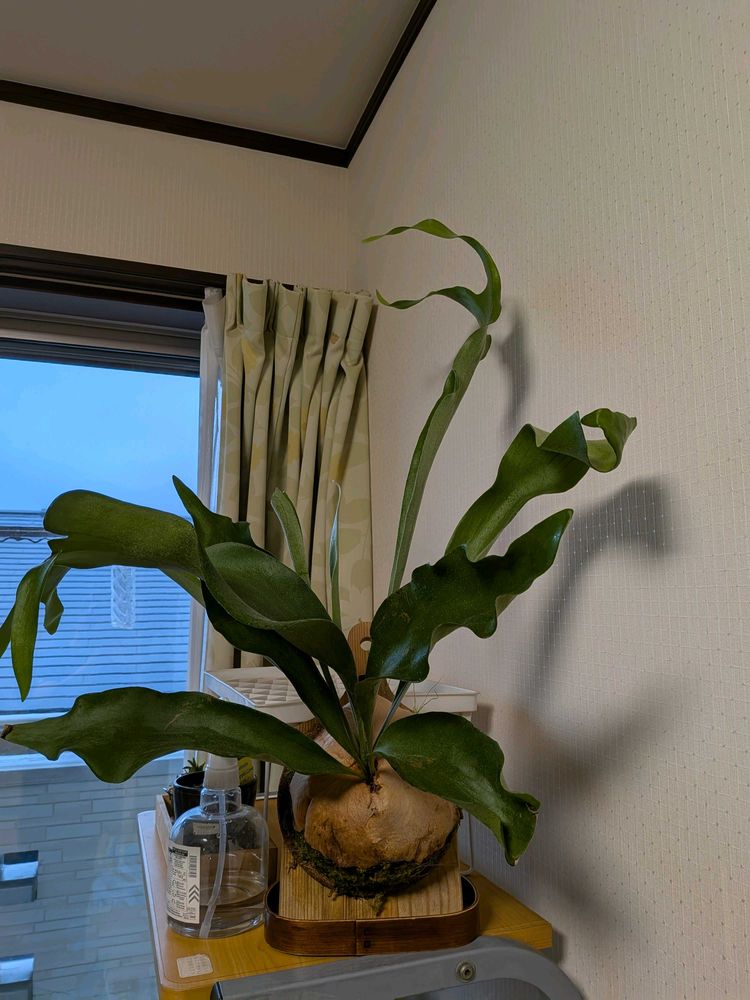 ビカクシダは冬の間寝室に置いていたら、3倍くらいの大きさになりました。