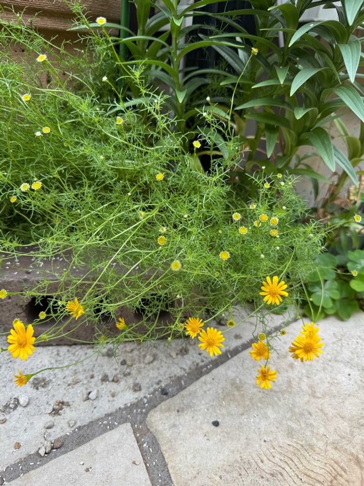 こぼれ種で育ったダールベルグデージーも咲いてくれました。