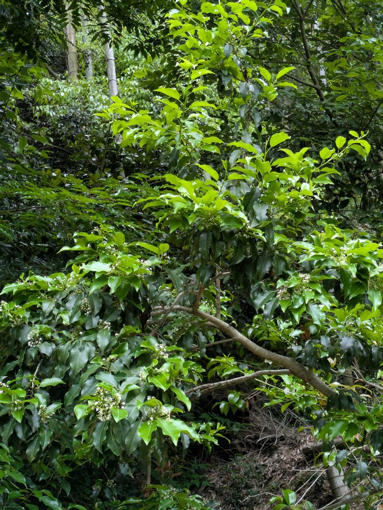 裏山で一本だけ見つけたので、鳥が種を運んで来たものだと思います