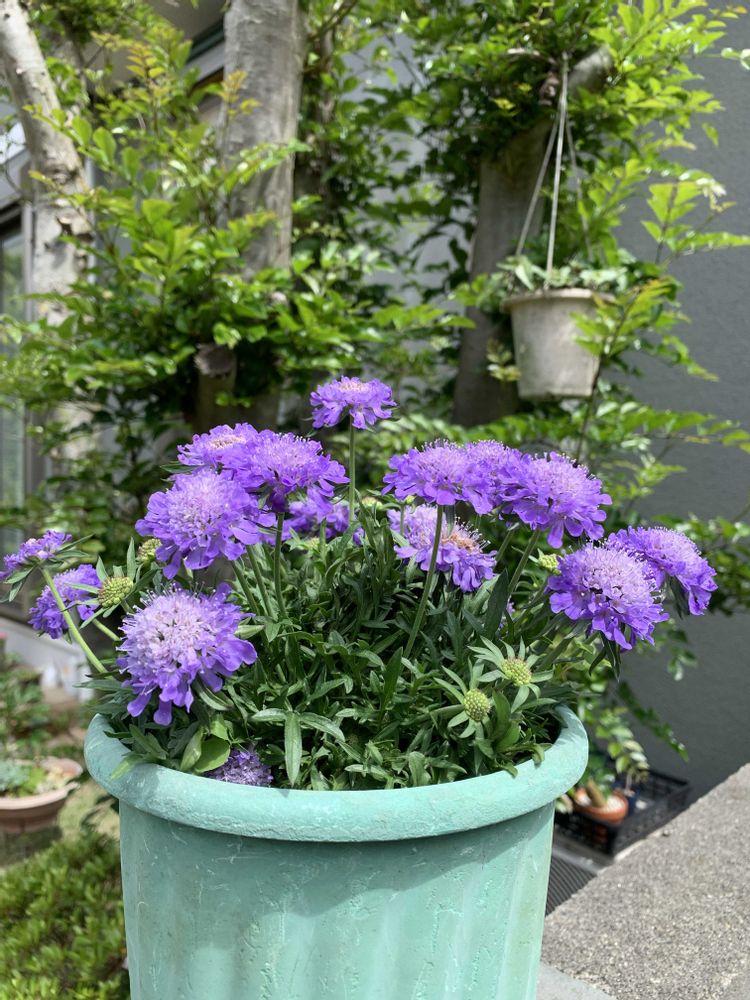スカビオサ見事に咲いてますね、難しそう、ふしぎな花きれい、フラワーアレンジメントで初めて知りました。