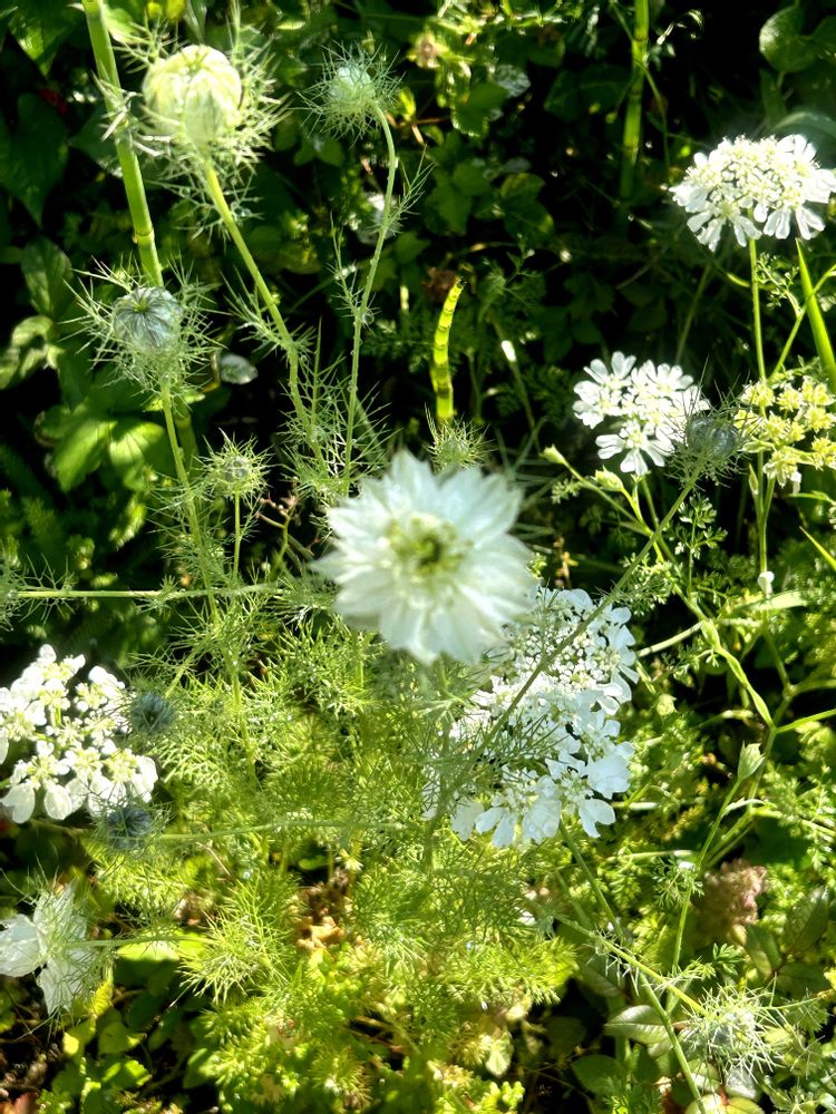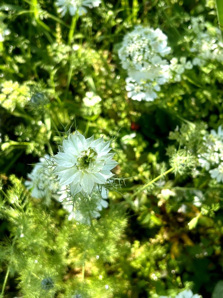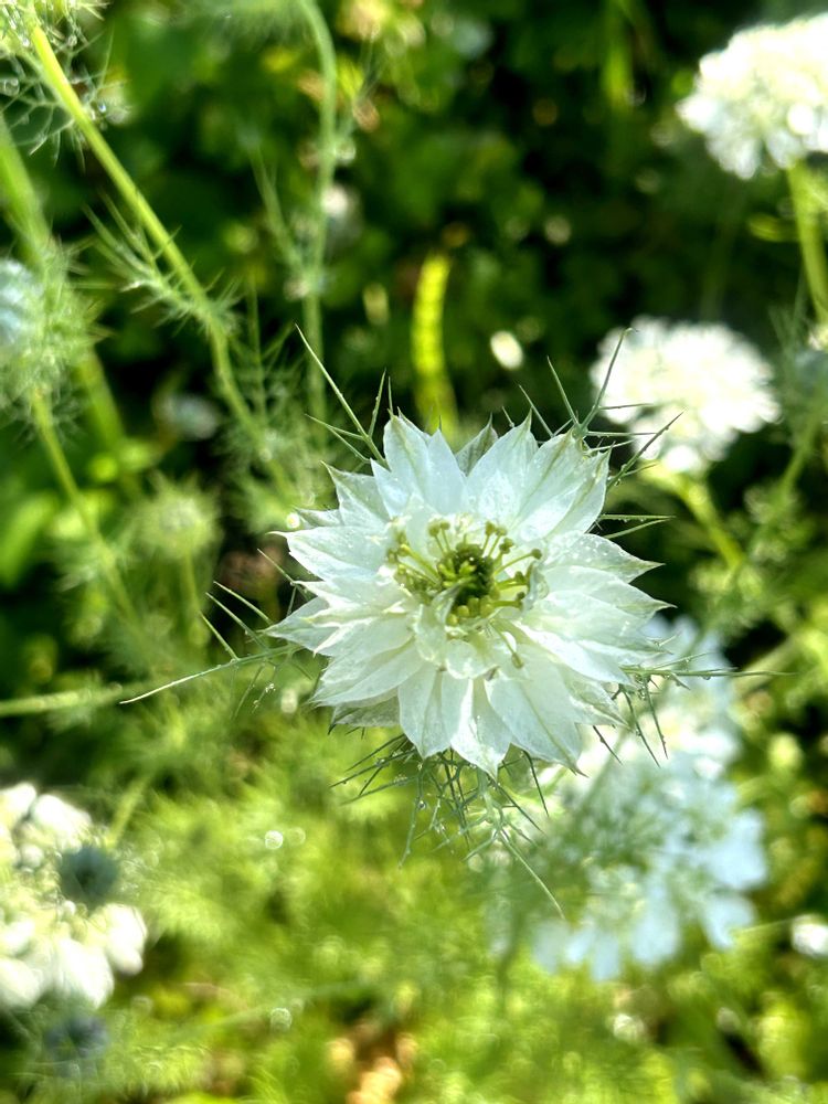 ニゲラの種から白い🤍花が咲きました