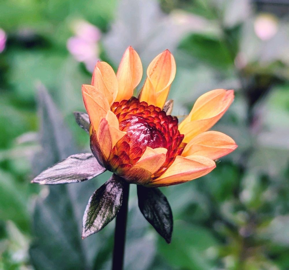 🧡❧黒葉小輪ダリアが3年の沈黙を破り