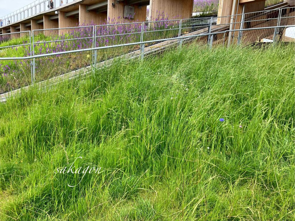 大屋根リングには、ぐるっと一周、幾種類かの花が斜めボーダー状に植えられていましたが、