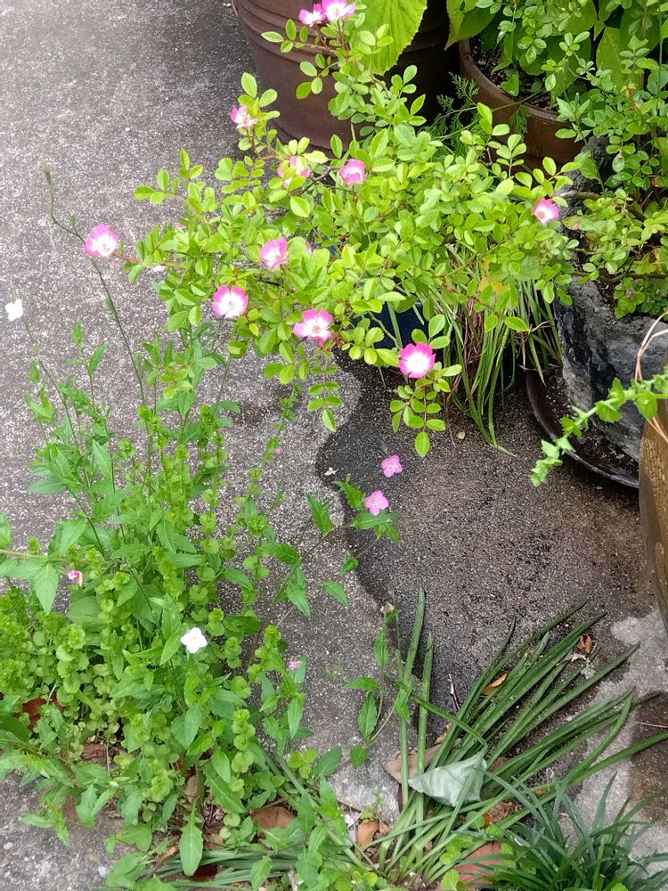 ユウゲショウ赤白で咲きました🎶 バラも満開です🎵