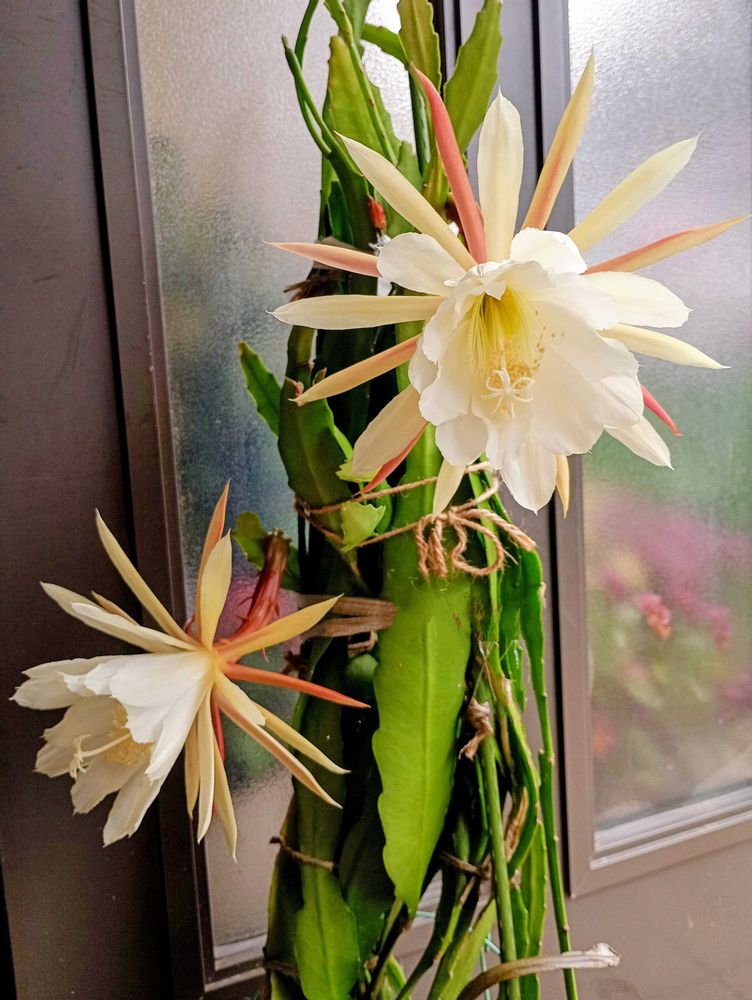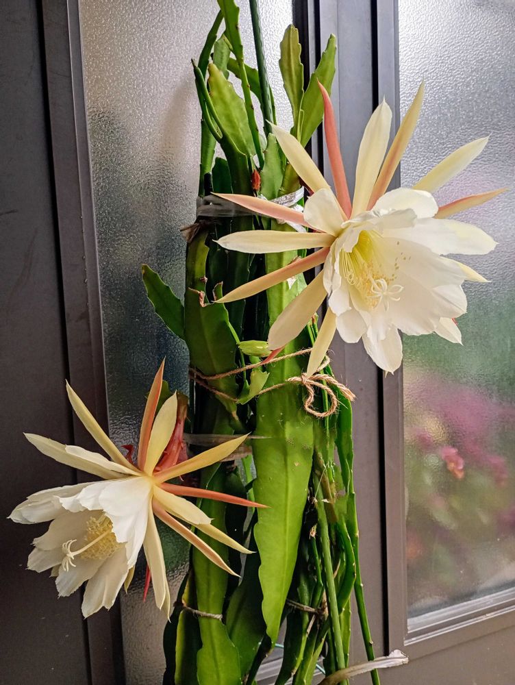 🍀花友さんに頂いたクジャクサボテン🌵🤍💮 もう4年くらいになります。