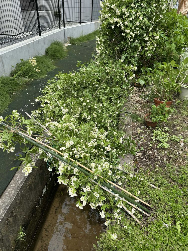 倒れたモッコウバラも両サイド✂️して元々の🪭型に、庭の片付けしながらショックで気持ちが落ち着きません( ; ; )