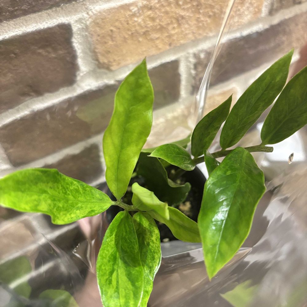 斑入りのザミオさん、ザミオさんにしてはふんわり柔らかそうな葉っぱでかわいい😍私もこの冬緑ザミオちゃんの方を腐らせちゃったよ😭何気に難しい🥲