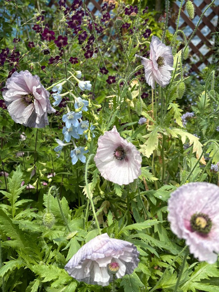 5️⃣奥に黒花フウロ、水色🩵のデルフィニウムベラドンナクリブデンビユーティーとアメイジンググレイ