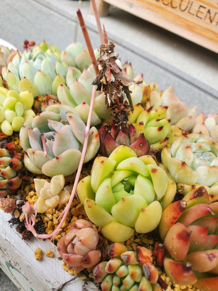 良く見ると多肉の枯れ葉や花芽の茎みたいなので作ってました😄