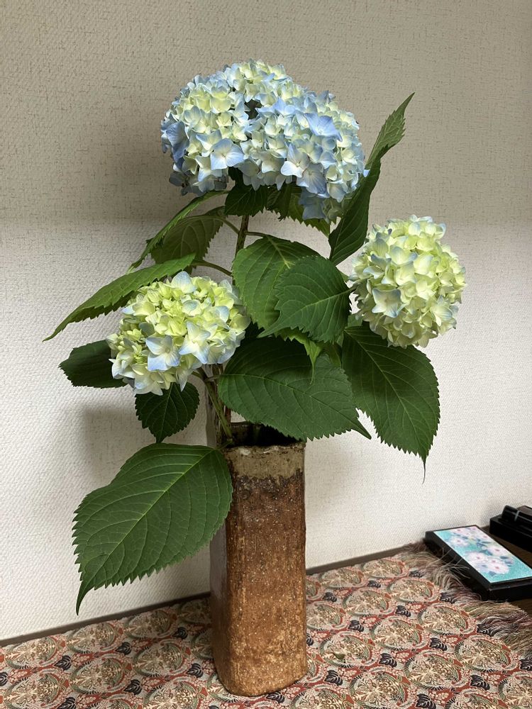 切花にした紫陽花も素敵です。いつも見られて癒されますね😊