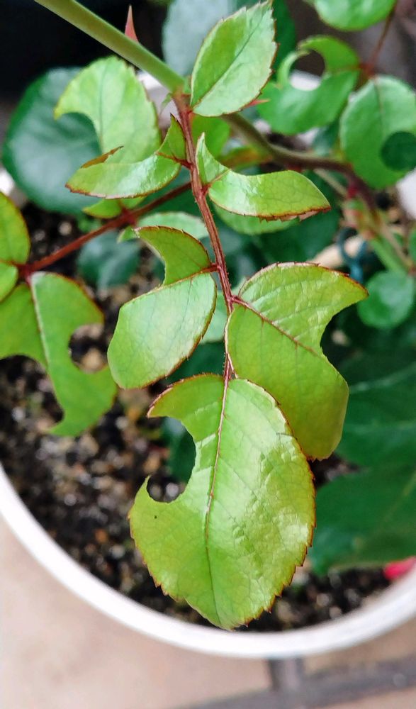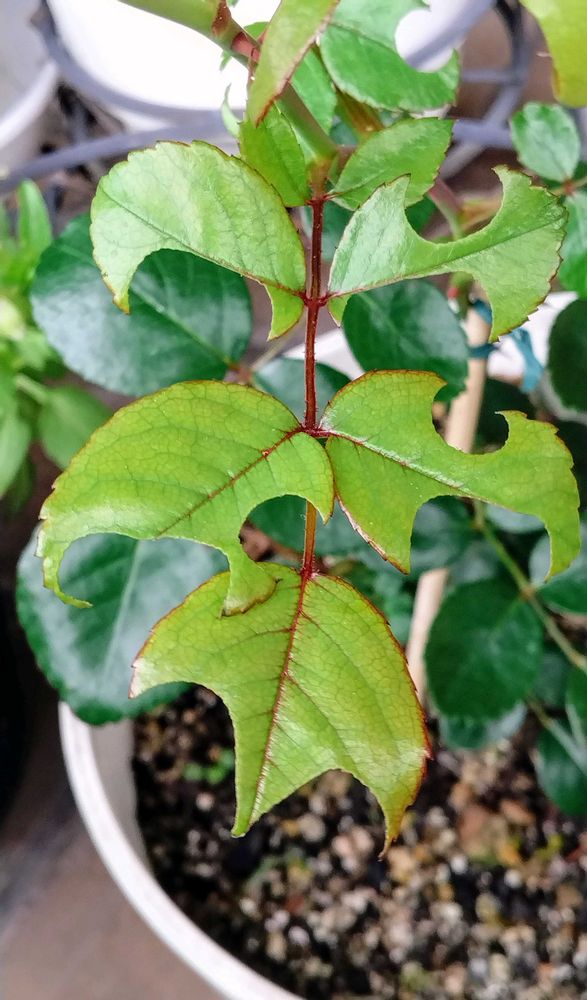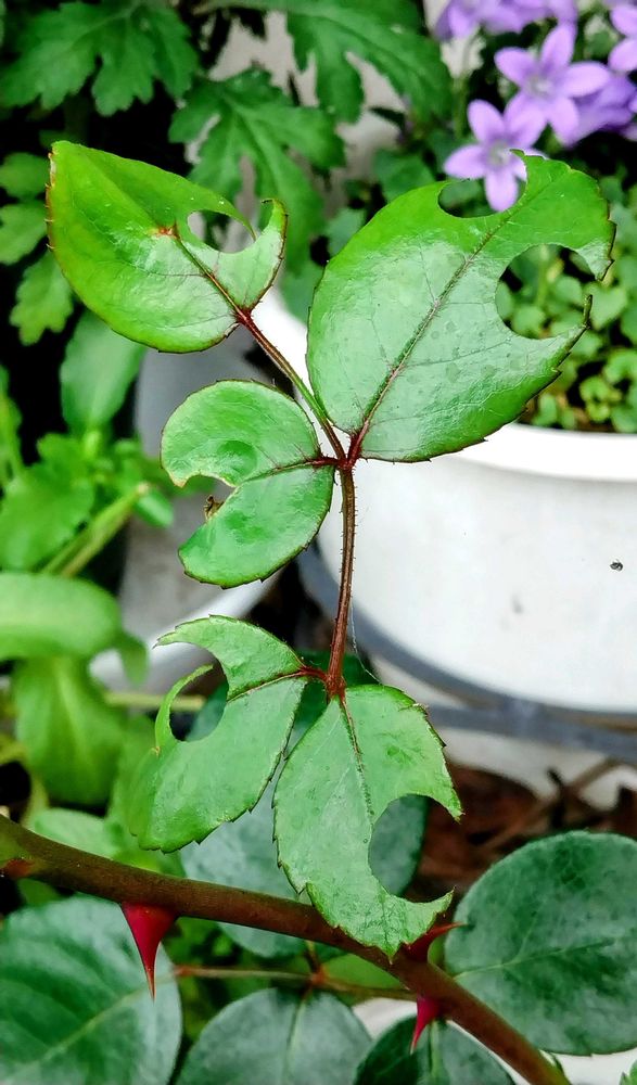 この薔薇の葉は徒長枝の柔らかい葉
