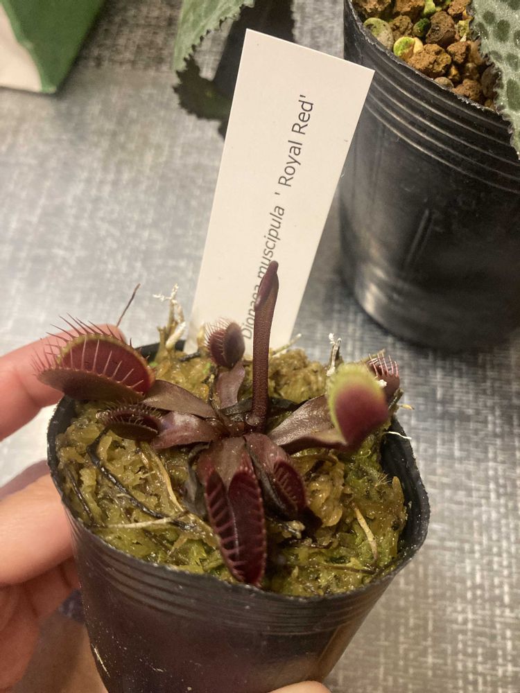 園芸道楽YOROZUYAの名前で合同出店されてるところで、ワンコインのハエトリソウのロイヤルレッドをゲット!