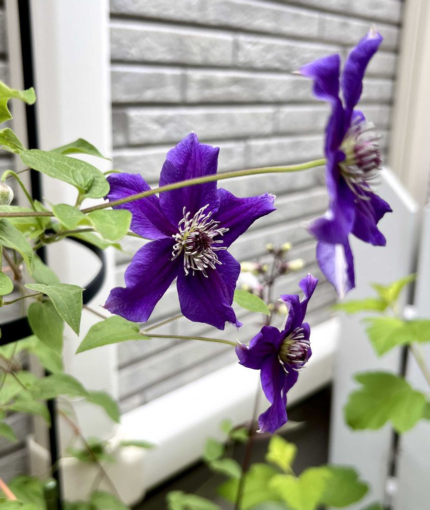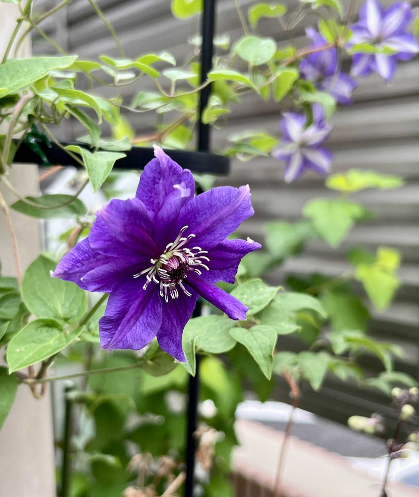 クレマチス・夜明け前が咲いてくれましたが、去年より一回り小さいような…。肥料が足りなかったのでしょうか。それとも環境があってない?
