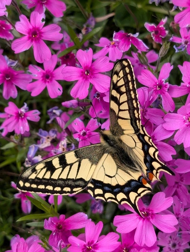 2️⃣終わりかけの芝桜にアゲハ蝶🦋がお食事に来てくれました°・*:.。.☆