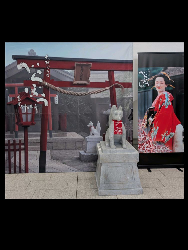5️⃣べらぼうに可愛いお花繋がりで先日行った札幌のNHK『べらぼう』巡回展の中の久郎助稲荷の綾瀬はるかさんと狛犬ならぬ狛狐🦊をupします( ᴗˬᴗ)