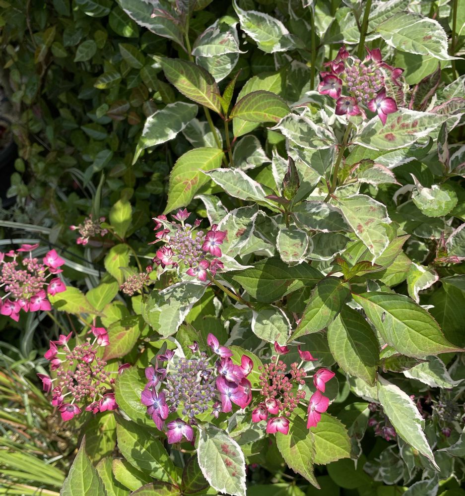斑入り葉の紫陽花綺麗に咲いてますねー✨