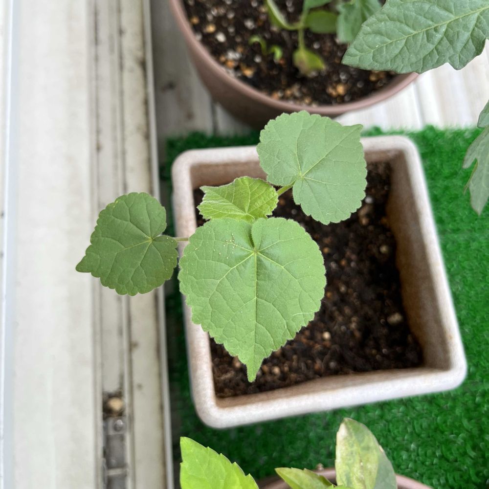 他のプランターにはえてきて、なんだろなと思って別にわけてたやつ。たぶんイチビだなとなって抜いちゃいました。