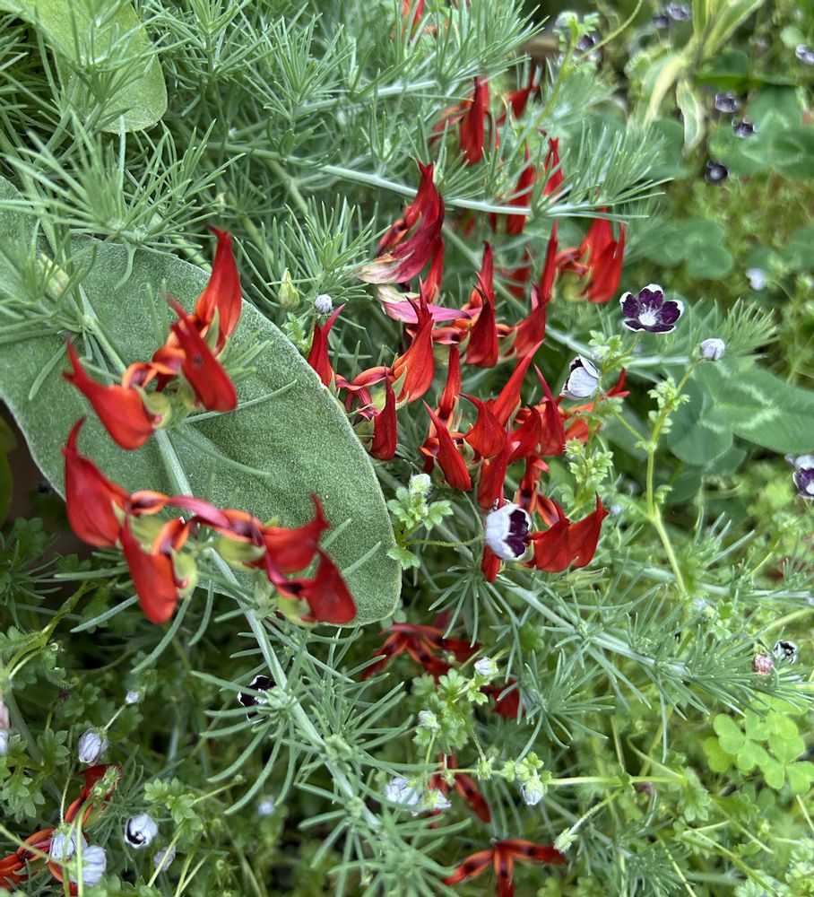 ロータス ブリムストーン,寄せ植え,赤い花の投稿画像
