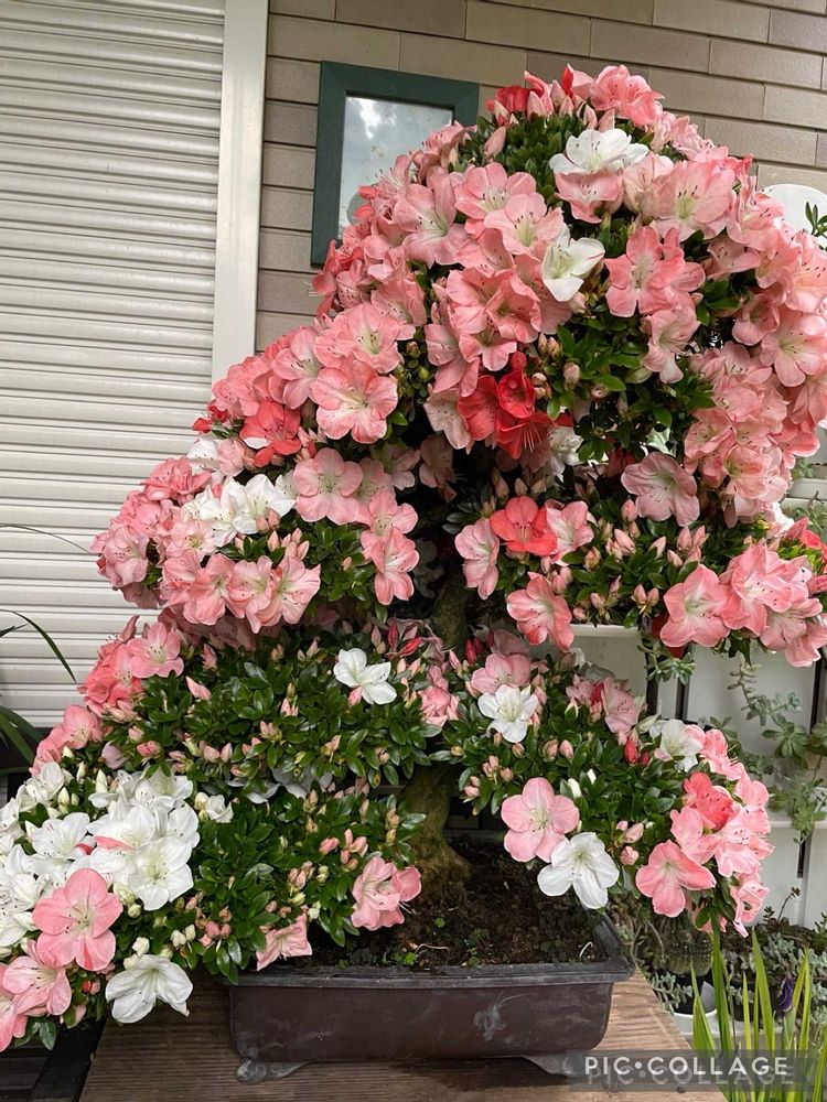 夫の育てているサツキ盆栽です。