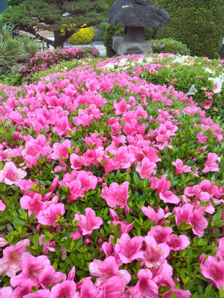 ツツジが終わってサツキが次々と咲いてゆく今が、我が家の庭の最も華やぐ時です。