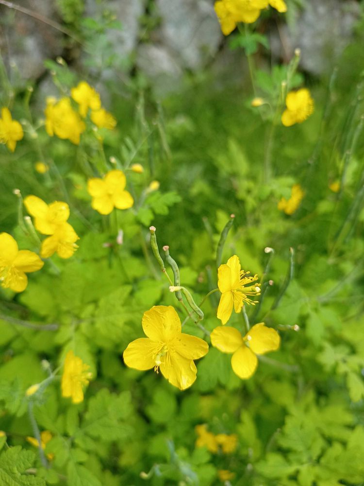 綺麗な黄色のクサノオウがたくさん咲いてます。