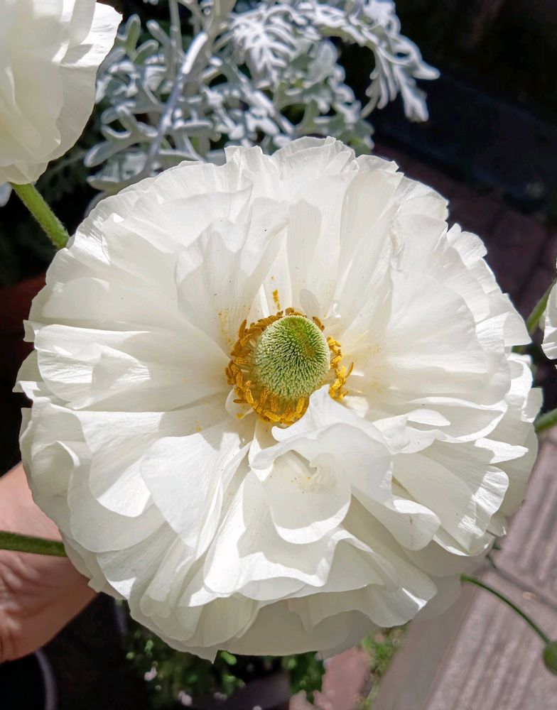 真ん丸真っ白な、ラナンキュラス🌼可愛らしい~🎵