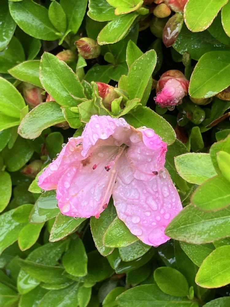 咲き始めたサツキをパチリ。シロバナベゴニア、ダッチアイリスも開花中。