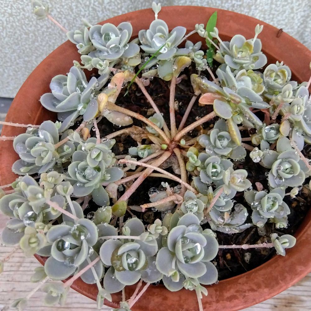 ④子持ち蓮華にも雨粒いっぱい💧