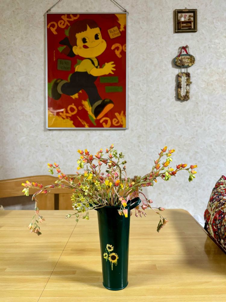 私も多肉植物のお花を花瓶に挿しています。そのまでの量では無いけど😅