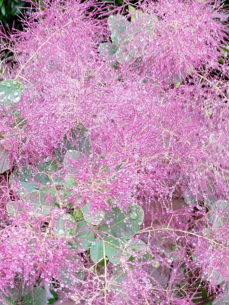 スモークツリーに小さな雨粒が沢山付いてとても綺麗でした。