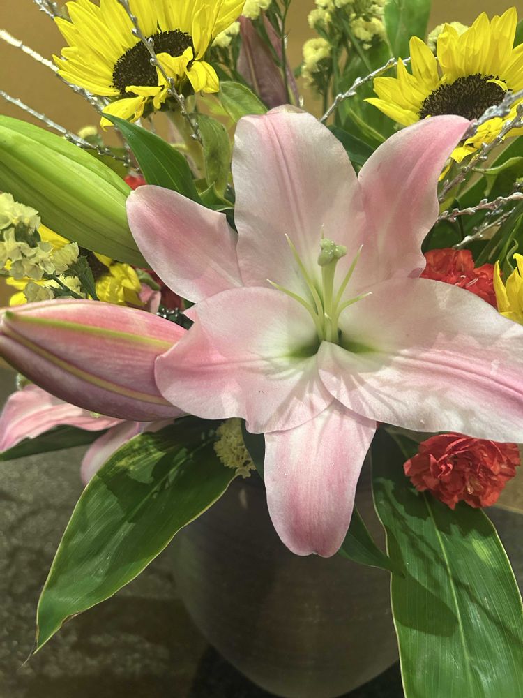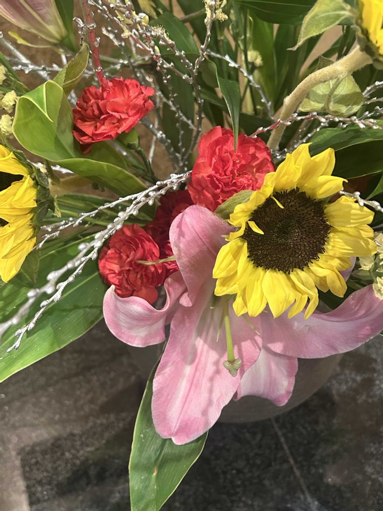 ひまわり🌻が入るとパッと明るく元気になる生け花ですね🥰