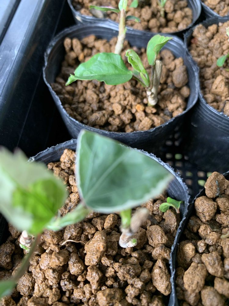 班入りのハイビスカス・スノーフレークの挿し木苗に新芽が❣️