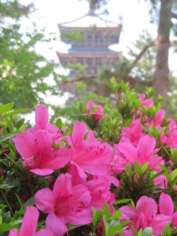 五重塔とのコラボ、お花を見ると何とか一緒に撮れないかアングル探しについつい夢中になってしまいます☺
